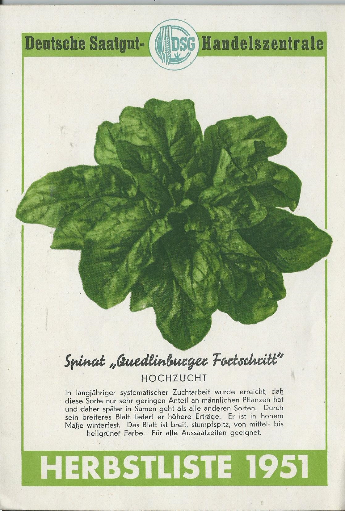 Die Deutsche Saatzucht Gesellschaft in Quedlinburg ging aus vier großen Privatfirmen hervor. Um 1950 wurden noch viele alte Sortennamen verwendet, was auch als Stolz auf die Leistungen der damaligen Züchter gewertet werden kann.